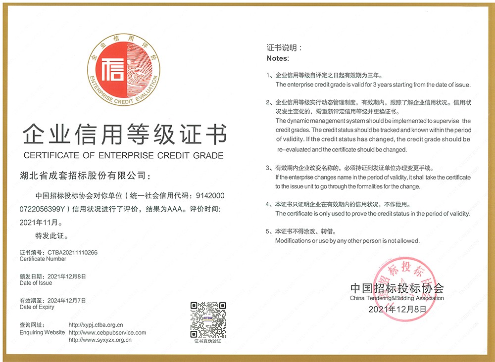 中国招标投标协会企业信用AAA等级
