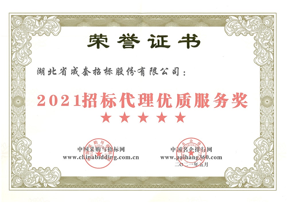 2021招标代理优质服务奖(五星)