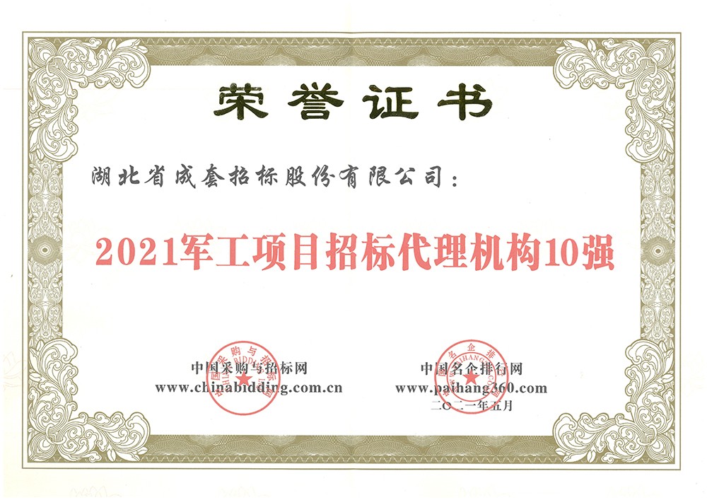 2021军工项目招标代理机构10强