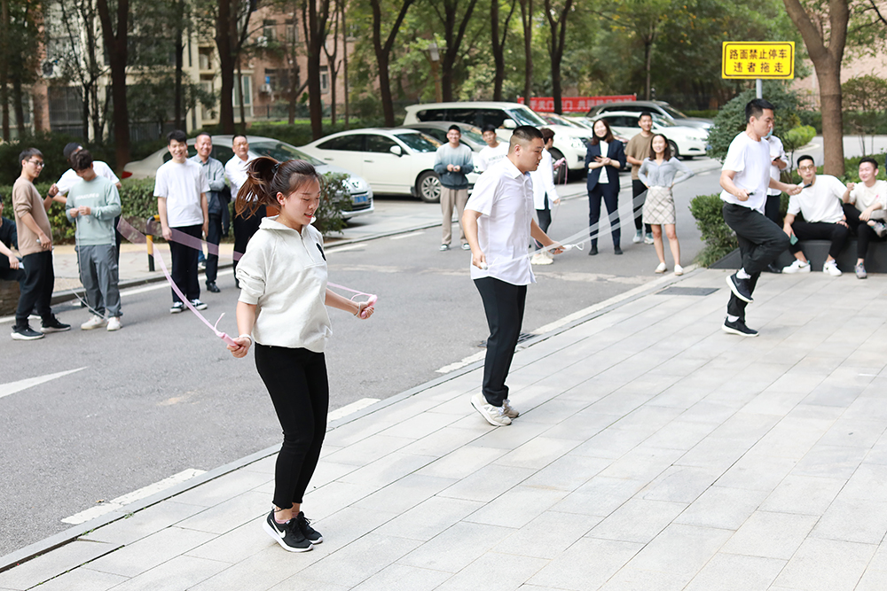 11月10日下午,在疫情防控的前提下,suncitygroup太阳新城公司工会举办了“‘跳’战疫情 ‘绳’彩飞扬”主题跳绳比赛,参赛员工在竞赛中充分展现个人风采和团队默契,在强化身体素质的同时也增强了团队凝聚力。