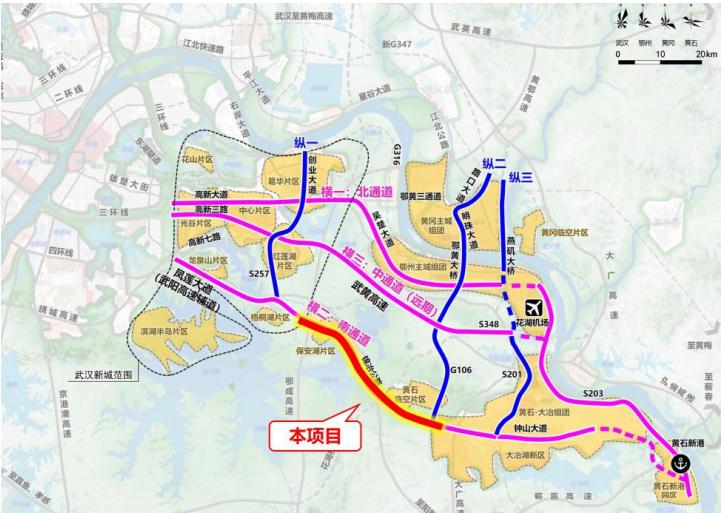 该项目属于武鄂黄黄“三横”南通道中的一段,路线全长27.949 公里,项目总投资约为18亿元。项目的实施将进一步加强武鄂黄黄的交通路网建设,有利于加快推动武鄂黄黄同城化发展,对加快黄石融入武汉都市圈的核心区具有重要意义。