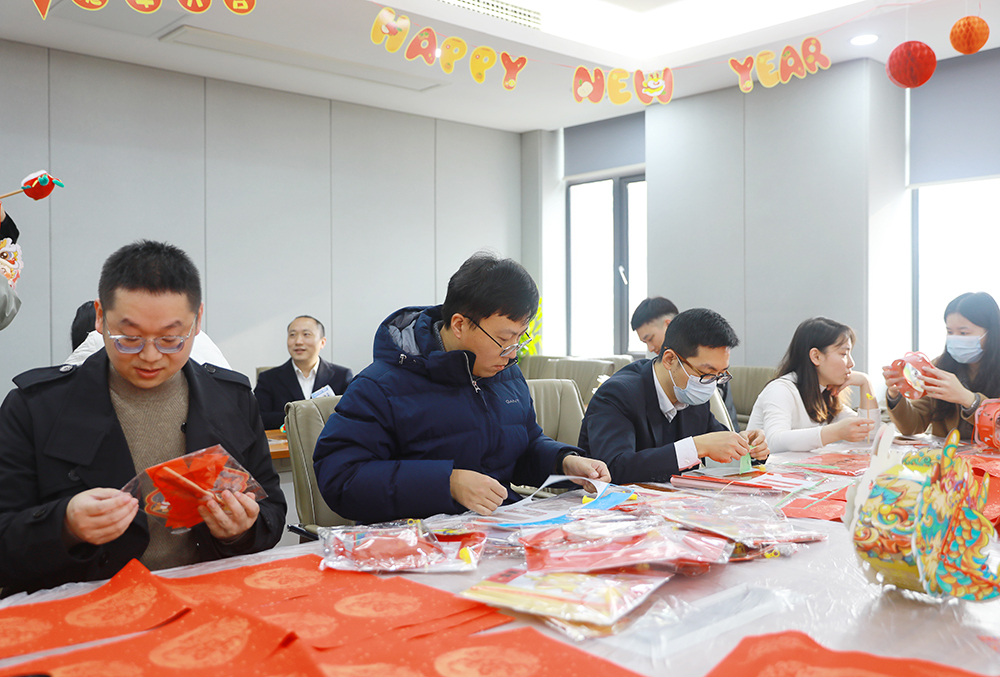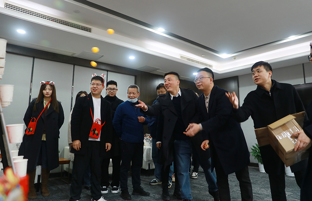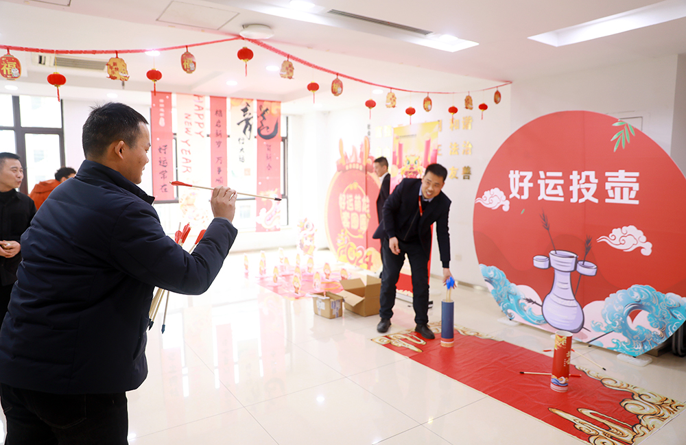 新春团拜结束后是公司精心策划的游园会环节。公司全体员工带着饱满的热情参与到猜灯谜、写春联、折灯笼、蒙眼敲锣等年味挑战活动中,活动现场精彩纷呈,热闹非凡。