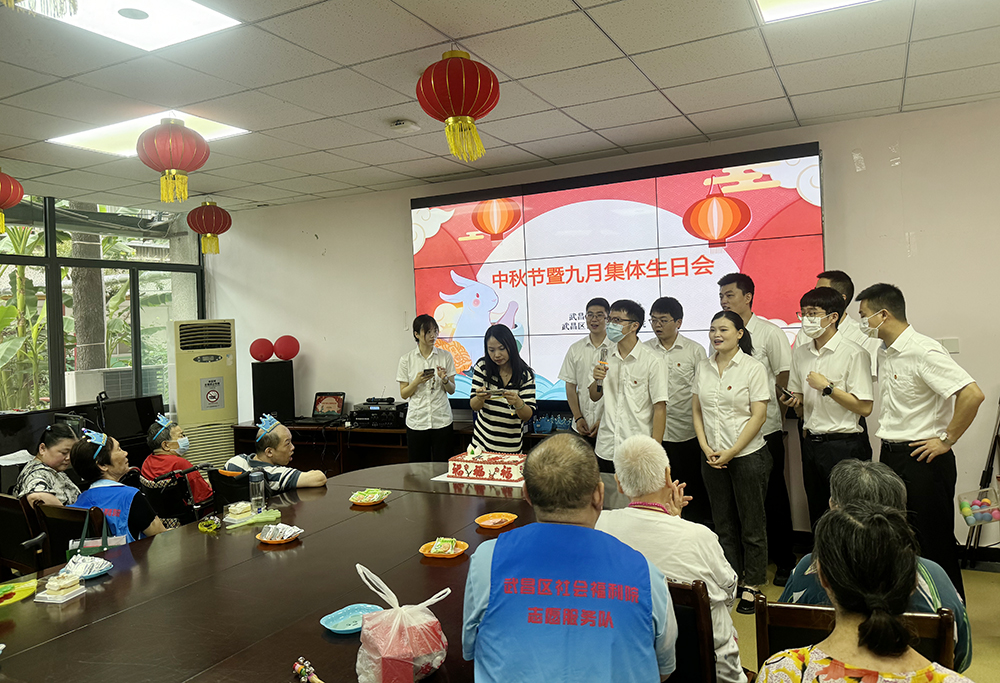 9月13日,在中秋佳节到来之际,suncitygroup太阳新城团支部组织志愿服务队前往武昌区社会福利院开展“爱心传递、温暖相伴”的志愿活动,为福利院老人送去温暖与祝福。