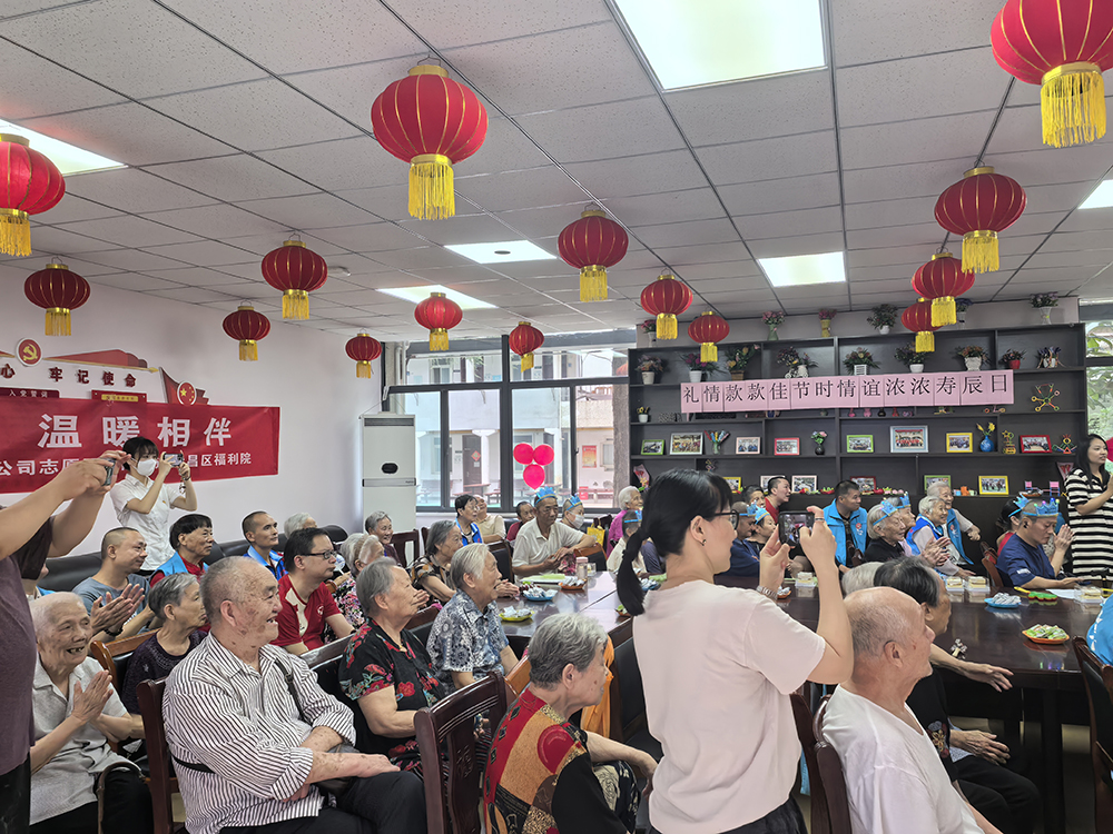 我非常有幸加入了公司的志愿服务队,一起前往武昌区福利院为老人们提供志愿服务。在我们为他们举办的集体生日会上,我深受感动。舞台上,我们用心演绎,力求每一份欢乐都能抵达老人们的心田,舞台下,老人们的笑容如孩童般纯真,那份由衷的喜悦,是对我们最好的回馈。